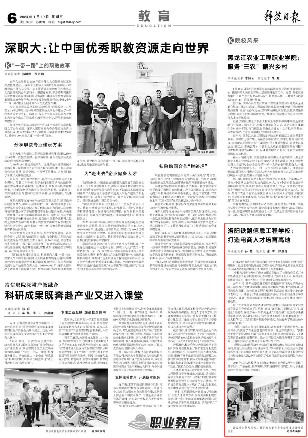 除了把业界优质专家请进学校外,该校还与洛阳源秀文化传媒有限公司合作成立了订单班,通过“订标准、订课程、订实习、订就业”的模式,保证学生从学校到企业“无缝衔接”,让优秀学生获得实践岗位,提高就业起点。该校信息工程系主任邱智铖谈到“引企入校”时说:“我们探索产教融合新模式,有效提升了职业院校学生的就业率。”
