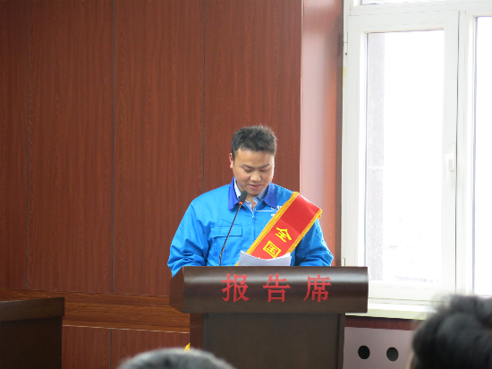 (轨道交通信号工第一名马庆作为获奖选手代表发言)