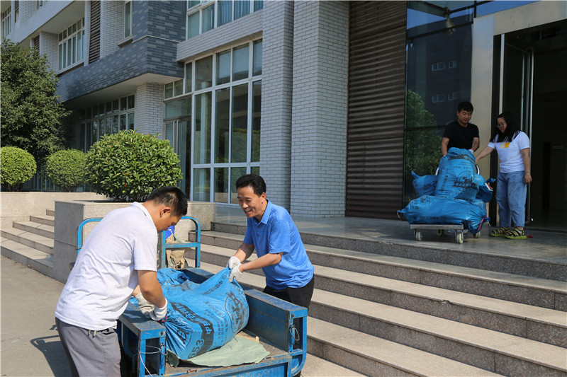 ——不忘初心、牢记使命主题教育系列报道之四编者按:“不忘初心,牢记使命”主题教育开展以来,全校党员干部悟初心、守初心、践初心,工作积极性和战斗力空前高涨,干事激情和主人翁意识明显提升,在学校实训楼和总务库房搬迁过程中,同志们主动放弃休息时间,冒着高温酷暑,挑重担、争先锋、作表率,以实实在在的努力为下学期教育教学各项工作顺利进行提供了坚强保证。 “握紧四角,大家一起用劲儿!一、二、三、起!” 7月7日上午11:00,室外温度已高达37℃,在学校二号教学楼实训教室搬迁现场,轨道信号工程系和电信工程系的党员职工正在搬运笨重的实训器材,伴随着铿锵有力的号令,一排重达数百公斤的信号方向盒,在14名青壮年党员的努力下被缓缓抬起,为了保证设备在搬运中的安全,大家一个个精神抖擞,步伐整齐,依令而行。 在一号教学楼教务科书库,电气工程系和教务科的党员职工正在清理库房,大家或肩扛,或手抬,有人打包,有人装车,有人运输,一个个汗流浃背,热火朝天。 在四号实训楼大厅南侧,总务科的同志们正在搬运钢管、铁架等维修耗材,滚滚热浪似乎更加激发了大家向酷暑叫板的勇气和向困难冲锋的斗志,虽然同志们的衣裳早已湿透,汗水顺着脸颊肆意流淌,但是一箱箱管扣、一根根钢管、一块块木板、一台台机器却一刻不停地在大家手中传递。 在搬运现场,校党委委员、副校长李文光说:“搬迁方案确定之后,同志们不顾高温酷暑,放弃休息,踊跃参与,争分夺秒,顽强作战。这不仅是学校‘搬家精神’的传承和弘扬,更体现了党员职工‘不忘初心、牢记使命’办好高水平职业学校的强烈责任感和主人翁意识,这种精神将为学校在新形势下关键时期的高质量发展奠定坚实的思想基础。” 据了解,本次搬迁共有40余名党员职工参与,经过四天的努力,大家清理总务库房5间、教务科书库2间、学生教室8间、实训教室4间,搬运后勤维修耗材备品8000余件,图书15万余册、桌椅550余套、实训设备数十套。 (撰稿、摄影:王振)