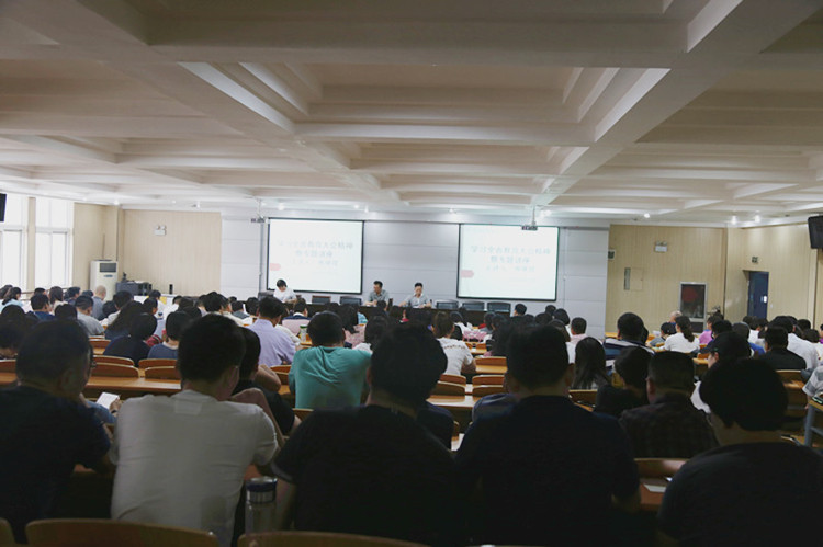会上,校长韩耀煌向全校职工传达了全省教育大会精神。他讲到,全省教育大会是省委省政府在我省全面建设小康社会进入关键时期召开的一次十分重要的会议。大会提出了加快教育现代化、建设教育强省的目标任务,振奋人心,鼓舞士气;大会还出台了《全面深化新时代教师队伍建设改革的实施意见》,强调落实立德树人根本任务,并针对想解决而未能解决的实际问题和困难出台了一系列政策措施,有效提升了教师的政治、社会和职业地位,增强了教师的幸福感、成就感和荣誉感。另外,本次大会的规格之高、参会范围之广、政策力度之大都足见省委省政府对加快推进教育现代化、建设教育强省、办好人民满意教育的决心,同时也让我们对学校各项事业的蓬勃发展充满了信心。