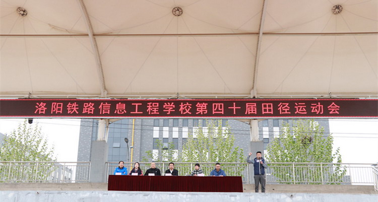 4月10日上午,我校第四十届田径运动会在学校运动场开幕式,校领导韩耀煌、杨建光、郭青,校团委书记朱亚利、本届田径运动会总裁判长张先旺参加开幕式并在主席台就坐。开幕式由校办主任张端立主持。