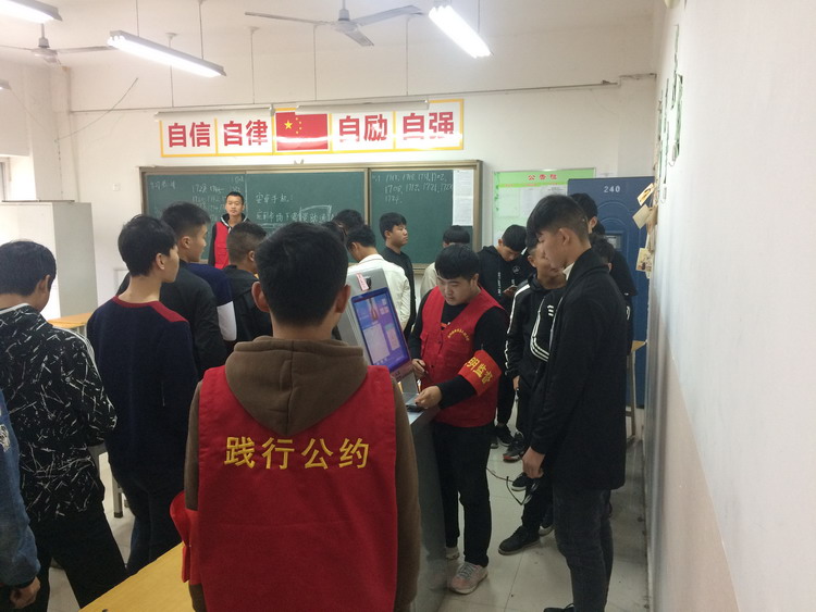 自本学期开始我校在校领导的安排下,每周一个班级进行践行《中等职业学校学生公约》活动,并给践行公约班学生配备了整齐统一的服装,在老师的带领和指挥下主要开展在校园、教学区域和学生生活区域对全校学生进行文明监督工作,制止并督促改正学生中的不良行为和不文明习惯,帮助老师做一些日常管理中涉及公约内容的力所能及的事情,把对学生公约的认识落实到每周的实践工作中。