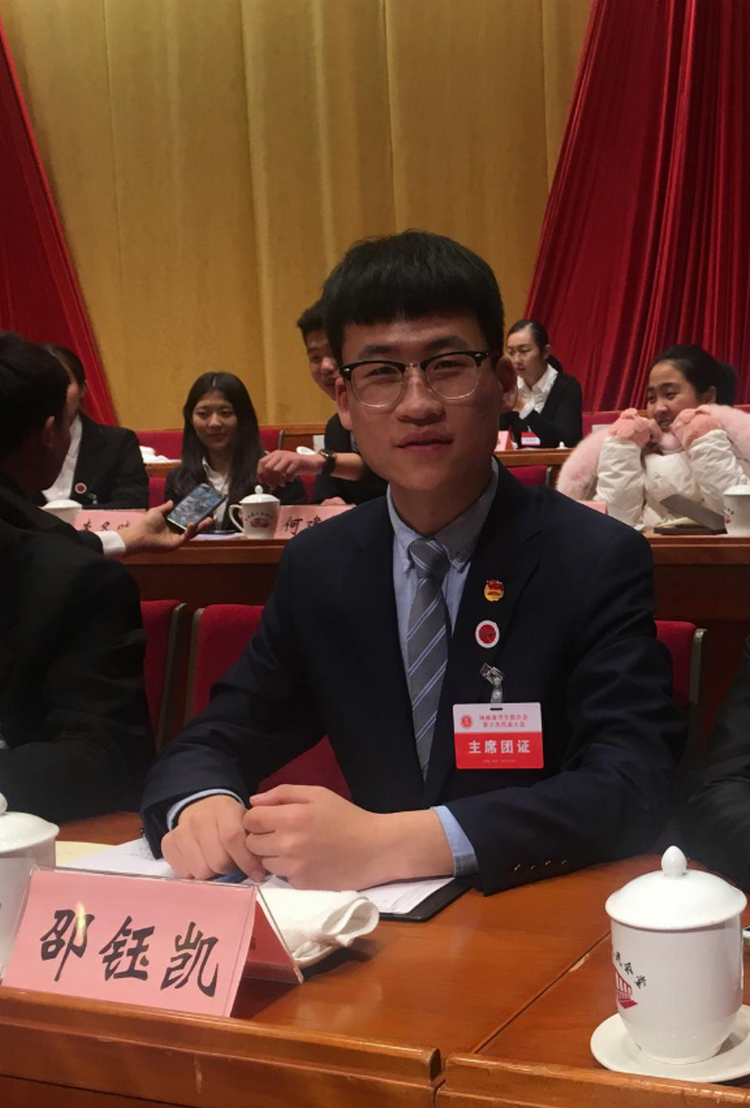 我校学生代表邵钰凯同学做了“会做人、会学习、会实践、会创新”的工作报告,在河南省学生联合会第十次代表大会委员及大会主席团选举中,以417票成功当选大会委员及大会主席团成员。