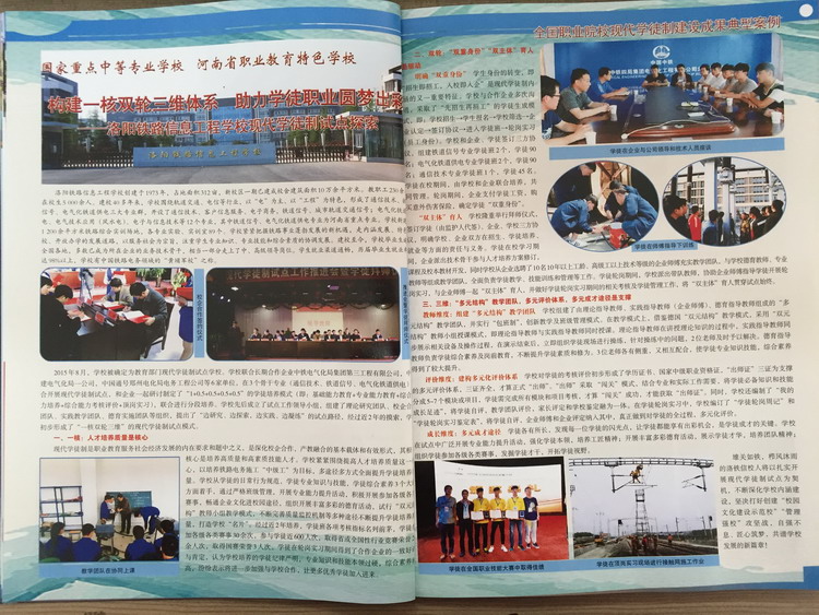 《中国职业技术教育》杂志是教育部职业技术教育中心研究所主办的一份综合性、全国核心中文期刊,是我国职业教育战线上发行量最大的国家级刊物。该刊以大量篇幅对我校现代学徒制试点探索进行报道,是对我校现代学徒制试点的充分肯定。下一步,我校将积极总结完善相关经验及资料,为我校现代学徒制试点画上圆满句号。