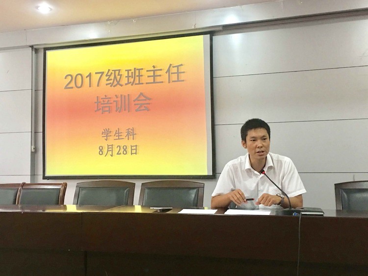 8月28日下午,学生科在1号实训楼2楼阶梯教室了召开2017级班主任培训会。学生科科长、校团委书记张波,学生科副科长李臻及2017级班主任参加了本次大会。