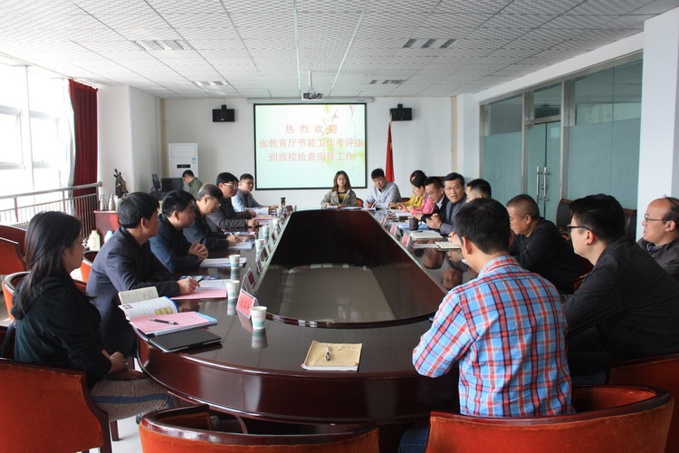 4月12日上午,由河南广播电视大学副校长丁胡诚为组长的省教育厅节能工作考评组一行八人到我校检查指导工作。校党委书记陈云峰、副校长于庆斌、副校长兼工会主席史亚非等在图书信息楼四楼会议室接待了考评组一行。