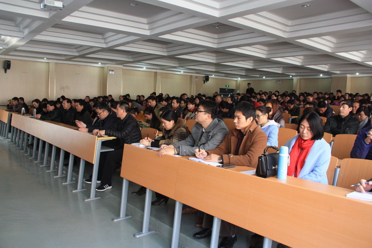 2月18日上午十点,我校在一号实训楼二楼多功能报告厅召开新学期全校职工大会,全体教职工参加,会议由校办主任张端立主持。