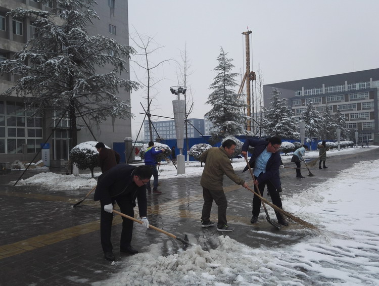 21日下午,学校党员干部以雪为令,带头投入到清理冰雪的队伍中。在凛冽的寒风中,大家挥动铁铲、扫帚铲雪开路,铁铲与路面清脆的碰击声与大家撸起袖子铲雪忙的场面,成为了雪后校园的又一道风景。经过近1个小时“歼灭战”,校园内主干道上的积雪和冰层被清理干净,为广大师生的学习、生活提供了极大便利。