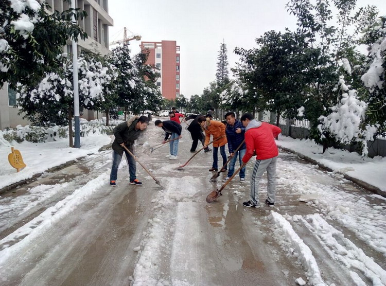 前几日突然来袭的大雪让我校校园道路上堆满了厚厚的积雪,特别是启航北路因为在阴面冰雪消融困难,给老师和同学们的行走和交通造成很大不便。为方便师生出行,保证道路安全畅通,11月24日中午,在大专管理办公室的组织和带领下,大专学生会干部利用午休时间对道路上的积雪和冰块进行全面铲除清扫。