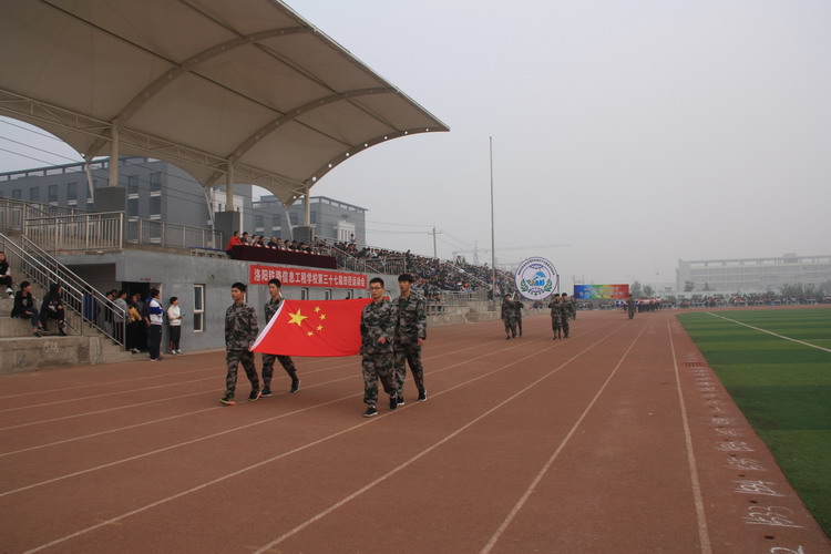 上午8时,运动会开幕式准时开始。在雄壮的运动员进行曲中,由全校各班运动员组成的96支表队1800多名运动员,着装整齐、精神抖擞地列队经过大会主席台,接受校领导检阅。他们以各自不同的队形和着装展示着班级特色,体现了洛铁信校人朝气蓬勃的动人风采和自强不息、奋发向上的精神风貌。随后,在雄壮的国歌声中举行了升旗仪式。