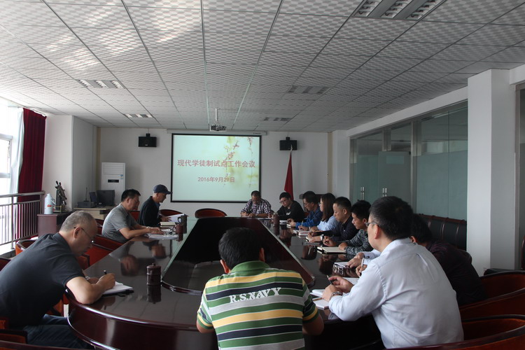 9月29日下午,学校在图书信息楼四楼会议室召开现代学徒制试点工作推进会,校领导韩耀煌、王怀钦,现代学徒制试点工作领导小组全体成员参加。