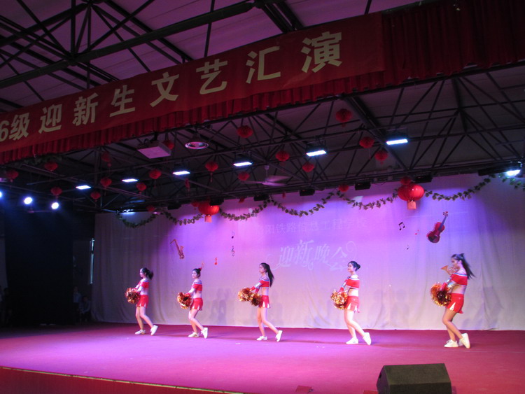 迎新晚会精彩纷呈,活力四射。1541班五位女生的啦啦操表演,热情奔放,节奏动感;1638班张耀文同学的《魔手神彩》赢得阵阵热烈掌声;1616班叶展同学带来的拉丁舞使整个演出达到高峰,欢呼声此起彼伏;晚会为大家带来一个师生同乐的不凡之夜,同学们的掌声和欢呼声更是接连不断。