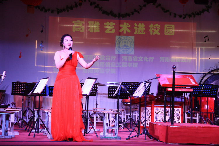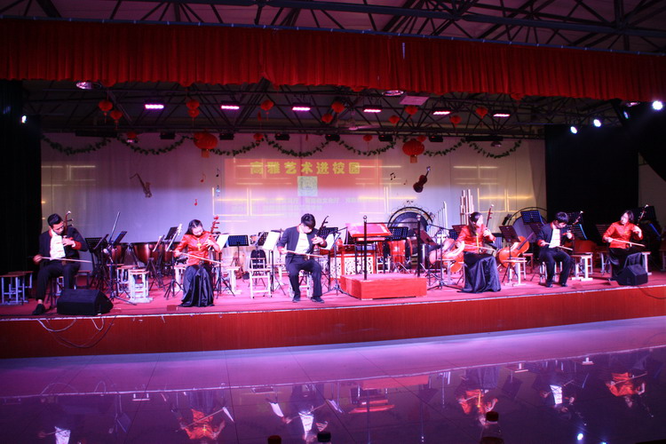 6月6日下午,2016高雅艺术进校园?洛阳师范学院青年民族乐团到我校进行专场演出。我校副校长杨建光、党委副书记兼纪委书记郭青、副校长史亚非与我校全体师生共同观看了演出。 演出在《庆典序曲》中拉开序幕。民族管弦乐《好汉歌》、唢呐演奏《百鸟朝凤》、男声独唱《母亲》、女声独唱《锦绣前程》、古筝重奏《西域随想》、二胡齐奏《战马奔腾》等表演精彩纷呈,高潮迭起,期间乐队指挥张强老师给师生一一介绍了乐器并进行试听演奏。 此次演出取得了巨大成功,陶冶情操,聆听经典,弘扬了我国各民族优秀的民族音乐经典,提高了师生的音乐鉴赏力,引领了校园高雅文化导向,促进青年学生向真善美发展。