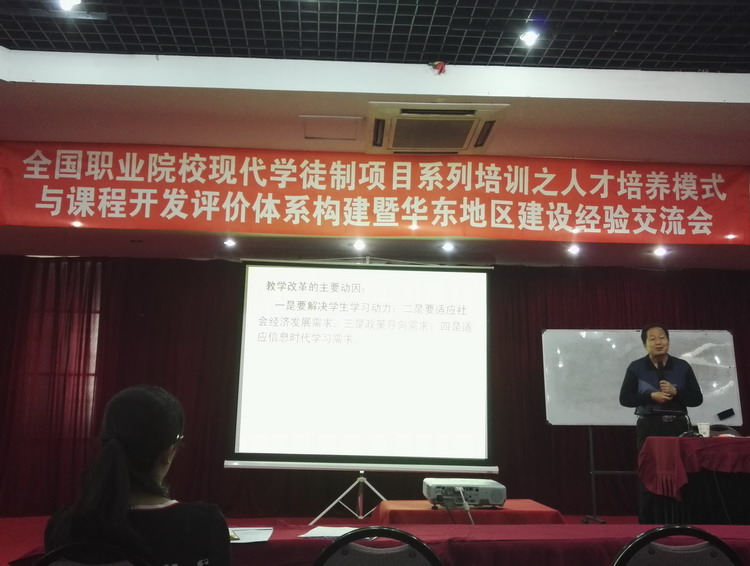 在学习培训中,我校教师认真聆听了于万成,车希海,巴世光三位职教专家的报告,三位专家结合自身试点情况,从现代学徒制试点工作的主要思路和相关文件解读;人才培养模式定位,人才培养方案修订与系统化人才培养文档建立;课程开发,组织实施与评价;现代学徒制试点经验几个方面对现代学徒制进行了全方位讲解,三场报告内容丰富,又深入浅出,让我校教师获益匪浅。在研讨环节,我校教师认真听取现代学徒制其他试点院校的成功经验,也分享了我校学徒制试点工作的特色。