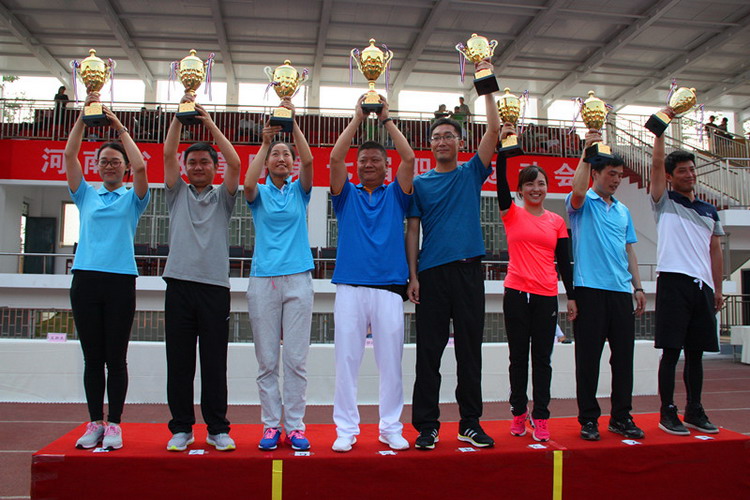 5月28日,河南省教育厅第七届职工运动会在河南应用技术职业学院举行。省教育厅副厅长、党组成员刁玉华、任峰、尹洪斌,省委高校纪工委书记、纪检组长、党组成员李莉华,厅党组成员、省招生办公室主任、党委书记朱玉山参加了开幕式。我校由副校长史亚非带队参加了此次体育盛会。 (主席台) (我校代表队入场) (开幕式广播体操表演,我校左二红队) (拔河比赛) 本届运动会共有教育厅机关和厅直属单位组成的27支代表队参加,我校体育健儿继续发扬“更高、更快、更强”的奥运精神,奋力拼搏,再创佳绩。取得了毛毛虫竞速比赛第三名,拔河比赛、袋鼠运瓜比赛第四名,五人制篮球赛第五名,最终我校获得团体总分三等奖和优秀组织奖。 (毛毛虫竞速比赛) 运动会合影留念 副校长李文光(左四)代表我校领取五人制篮球赛五等奖 副校长史亚非(左三)代表我校领取团体总分三等奖 通过参加此次运动会,增进了我校与兄弟单位的沟通与交流,展现了我校教职工的良好精神风貌。 副校长史亚非(右四)代表我校领取拔河比赛四等奖 校办副主任熊国雷(左四)代表我校领取优秀组织奖 臧嘉琪老师(右三)代表我校领取毛毛虫竞速比赛三等奖 孙青青老师(左四)代表我校领取袋鼠运瓜比赛四等奖