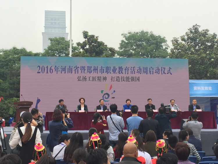 5月9日上午,由中共省委宣传部、省教育厅、省人社厅、郑州市政府等共同联办的“2016年河南省暨郑州市职业教育活动周启动仪式”在郑州市绿城广场成功举办。今年的活动主题是:弘扬工匠精神,打造技能强国。省政府、省委宣传部、教育厅、人社厅等相关负责同志等出席了启动仪式。我校在副校长杨建光,教务科科长段云冬的带领下组织展演教师参加了本次活动。