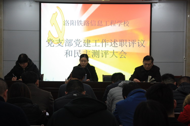 12月22日下午4:30,我校在图书信息楼三楼会议室召开党支部党建工作述职评议和民主测评大会。会议由校党委副书记兼纪委书记郭青同志主持,校领导班子成员、各支部委员以及党员代表和群众代表参加评议。