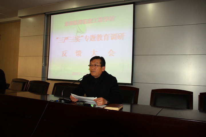 12月17日下午4:30,我校在校多功能报告厅召开“三严三实”专题教育调研反馈大会,大会由校办主任张端立主持,全体教职工参加。
