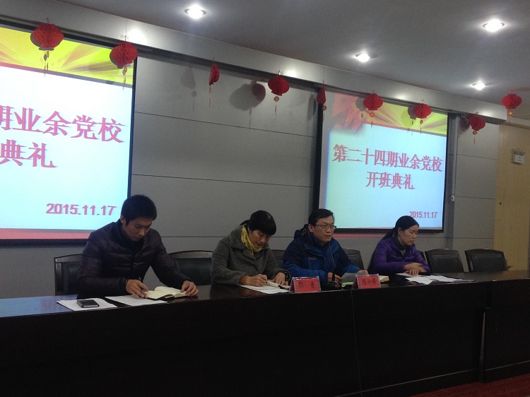 2015年11月17日,我校第24期业余党校开班典礼在多功能报告厅隆重举行。党委书记陈云峰、纪委书记郭青、学生党支部书记郭建丽、学生科科长兼支部宣传委员张波参加了开班典礼,典礼由张波主持。