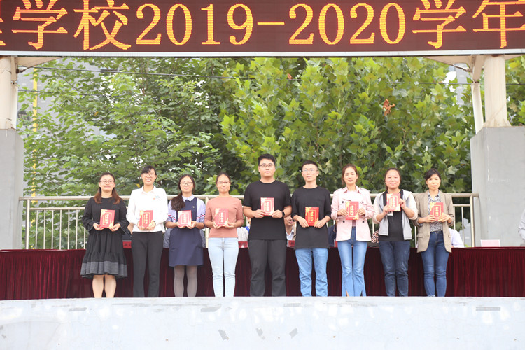 最后,举行颁奖仪式。大会对荣获河南省模范教师、河南省优秀教师,河南省教育厅党组表彰的优秀党员、优秀党务工作者、河南省教育厅2019年度学术技术带头人、2018年度校级优秀共产党员、优秀班主任及2019年校内优质课评比获奖老师颁发荣誉证书,并对获得“先进集体”荣誉称号的9个集体和获得“全优生”的19名同学颁发奖状证书,并给予奖励。
