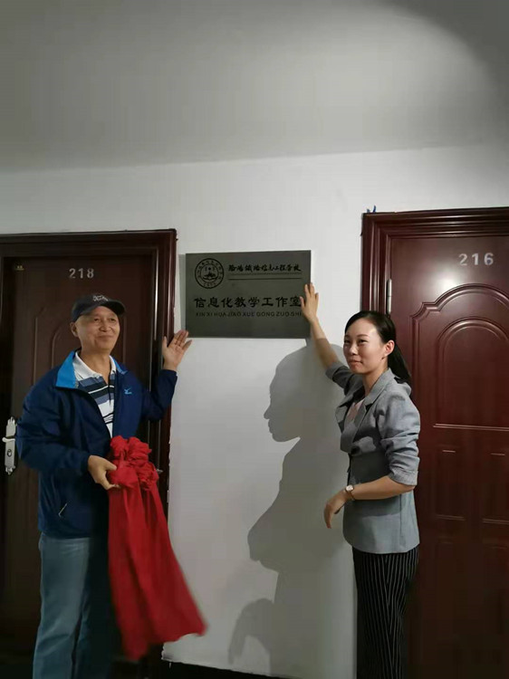 最后,王怀钦和李娅君共同为信息化教学工作室进行了揭牌。