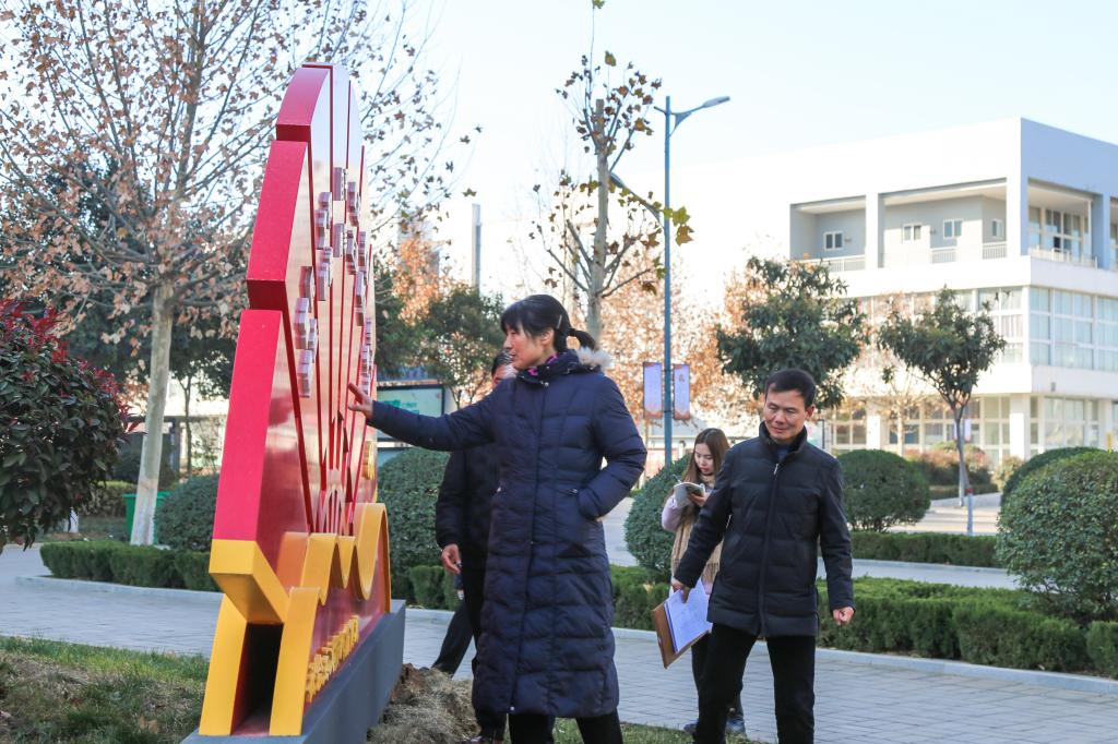 12月27日上午,我校组织相关人员对校园文化一期建设项目进行验收。校领导郭青、于庆斌及党政办公室、纪检监察室、基建科等相关科室人员参加验收。