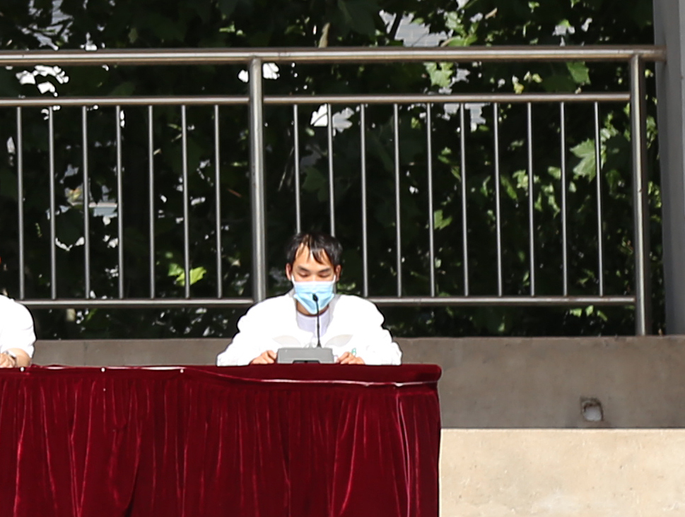 学生代表电信工程系李东杰从新时代青年人的担当使命出发,号召大家在这特殊时期要守纪律,听指挥,刻苦学习专业技能,展现新一代青年的精神风貌。