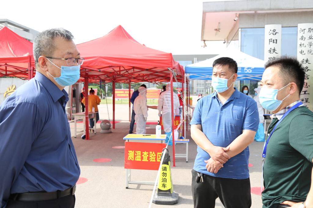 “同学你好,请提前出示健康码、提交承诺书,主动配合体温检测!全程戴好口罩,前后保持1米。”早上7点30分,学校领导及有关部门负责同志已早早站在学校门口,迎接同学们“回家”。