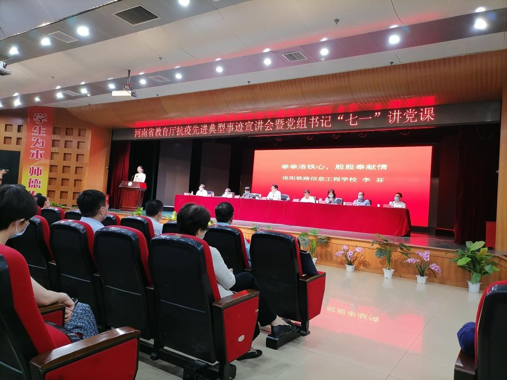 6月18日下午,河南省教育厅抗疫先进典型事迹宣讲报告会暨党组书记“七一”讲党课活动在河南省实验中学报告厅举行。报告会由省教育厅党组成员、副厅长刁玉华主持。