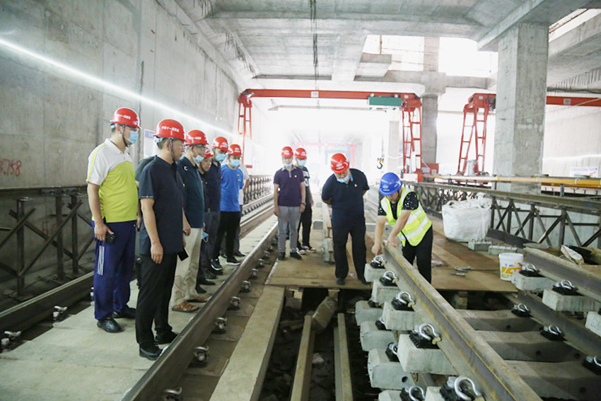 李荣杰重点介绍了地铁2号线的施工标准、施工工艺、工程进度、轨道铺设、设备安装等情况,并邀请我校中层干部一行乘坐轨道车在市体育中心站至市民之家站进行了区间乘车体验。