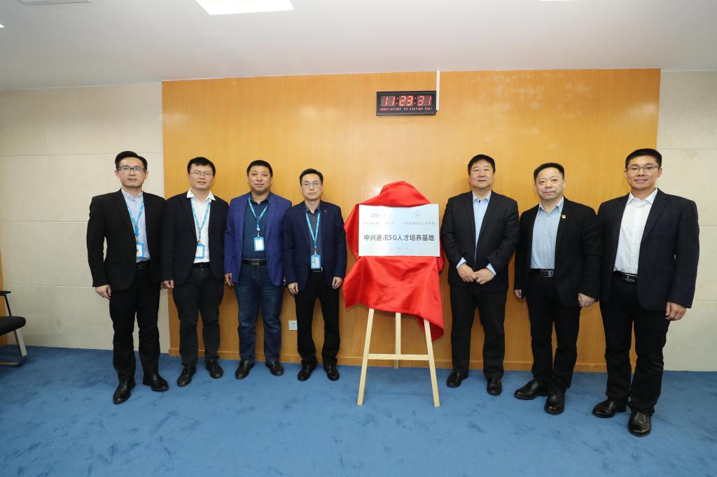 最后,中兴通讯赖晓明部长与我校副校长史亚非共同签署了合作协议,并为中兴通讯5G人才培养基地揭牌。
