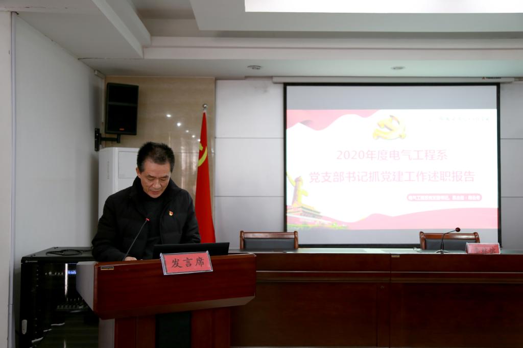 电信工程系党支部书记张波、电气工程系党支部段云冬、学工党支部书记尹亚波、机关党支部书记张端立、轨道信号工程系党支部书记王民哲分别围绕2020年度履行抓支部党建工作第一责任人职责情况、发挥党组织战斗堡垒作用和党员先锋模范作用推动学校中心工作情况、党支部特色做法和工作创新情况、工作中存在的主要问题及下一步工作打算等四个方面的问题进行了述职。