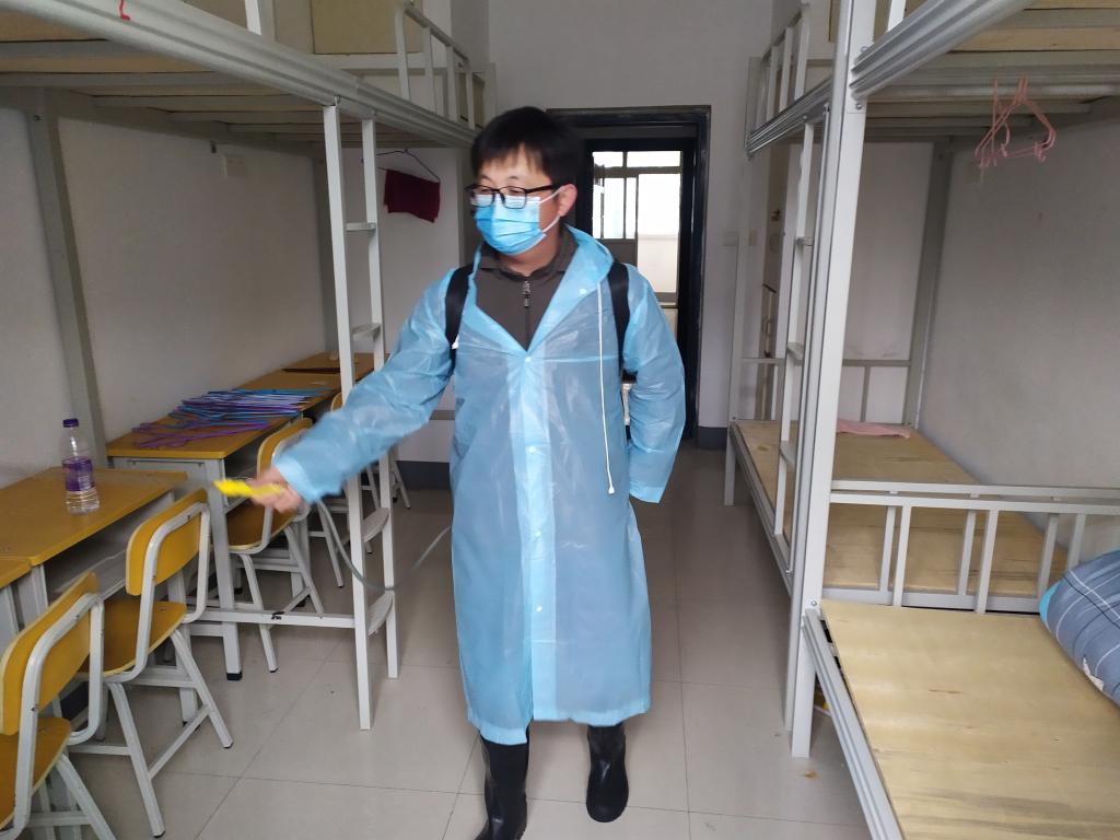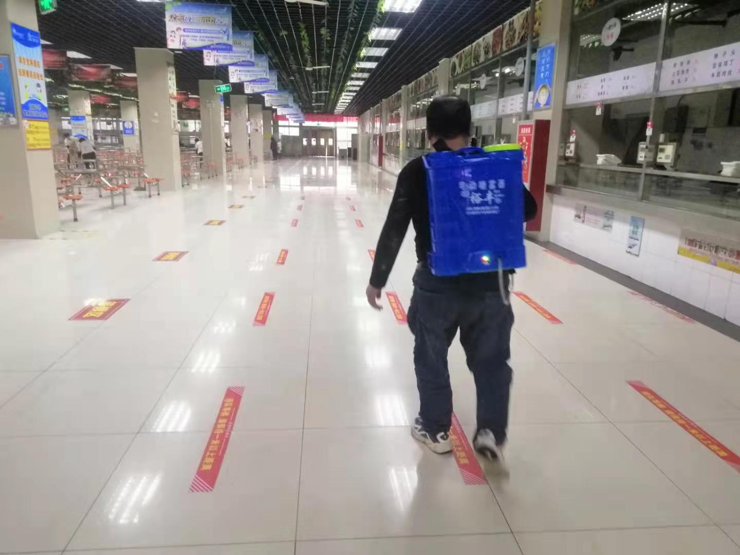 根据学校疫情防控领导小组工作要求,总务科重点对学生教室、宿舍、走廊楼道、隔离区、卫生间、食堂、校内广场等公共区域进行了全面喷洒式消毒。