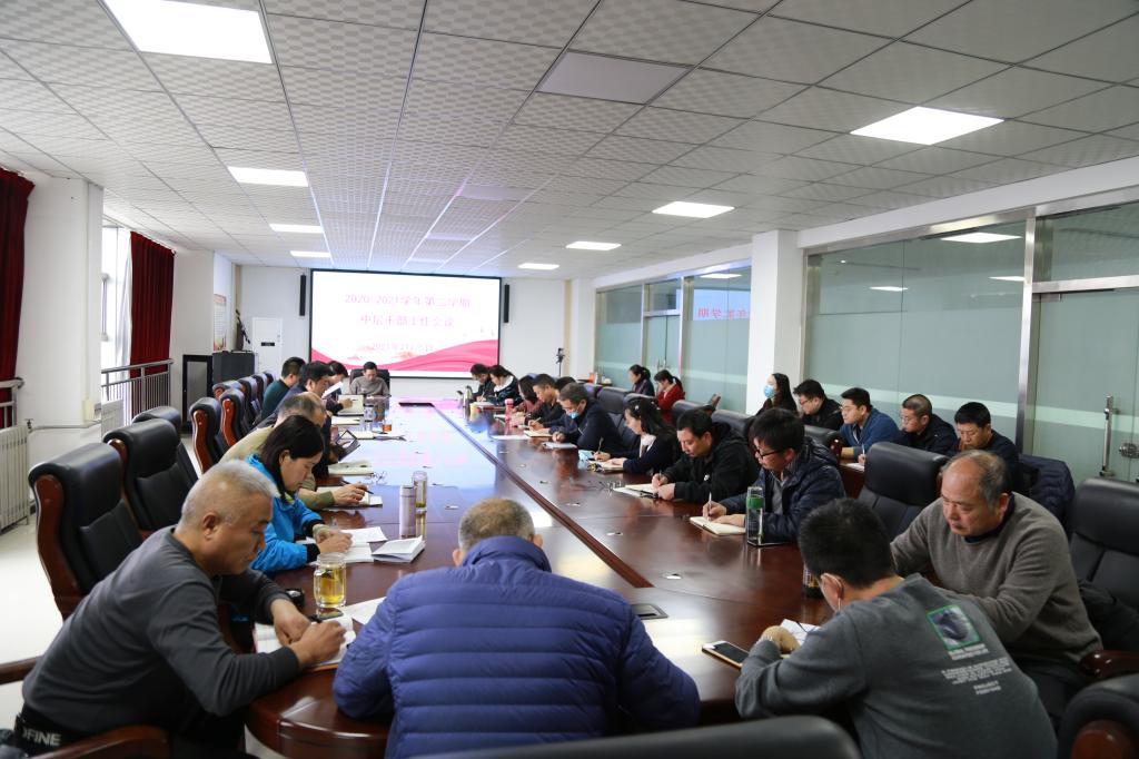 2月25日下午,我校在图书信息楼四楼会议室召开中层及以上干部会议,研究学校近期重点工作。会议由校党委书记李林榕主持。