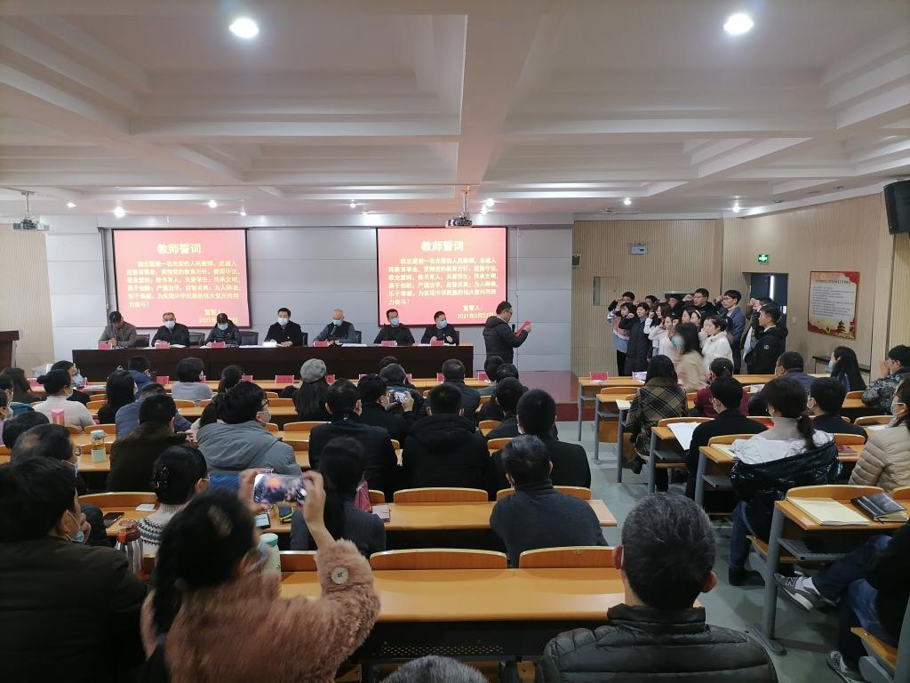 会上,王怀钦介绍了2020年、2021年学校新入职的16名教职工并强调全体教职工要规范课堂教学秩序,严格课堂教学管理,有序推进教学活动。校党委委员、学生工作部部长尹亚波带领新入职职工庄严宣誓《河南教师誓词》。