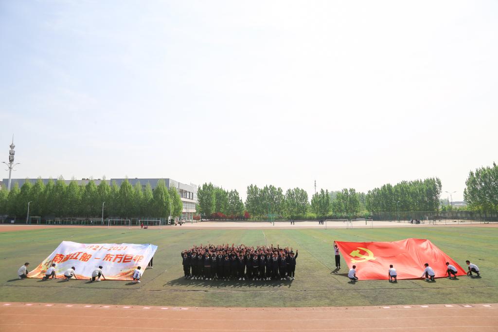 轨道信号工程系的同学们激情朗诵《七律·长征》,并用热情洋溢的舞蹈展现洛铁学子青春爱国的积极风貌;电气工程系的同学们踏着鼓声,不断变换队形,以百人制作党旗向党的百年华诞献礼;电信工程系的同学们以礼仪操的形式展示了我校实习生与洛阳地铁实习的精彩剪影,并以巨幅旗帜展示党的百年发展历程。