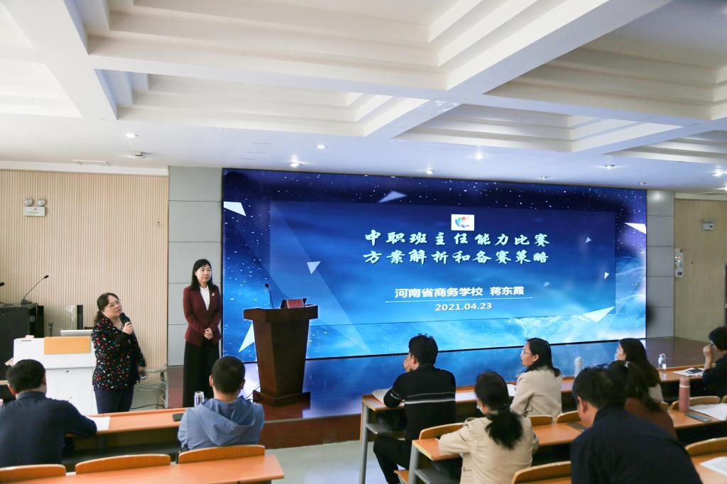为进一步推进我省中职学校班主任工作高质量发展,打造一支政治强、情怀深、思维新、视野广、自律严的班主任工作队伍,实现“三全育人”目标,推动我省中职班主任队伍建设出特色、有品质、铸品牌、塑形象。4月21日至23日,2021年河南省中等职业学校班主任工作高级研修班在我校如期举行,此次活动由河南省教育厅主办,河南省成人教育教学研究室、洛阳市教育局承办,我校协办。全省各地市110余名职教同仁参加培训。