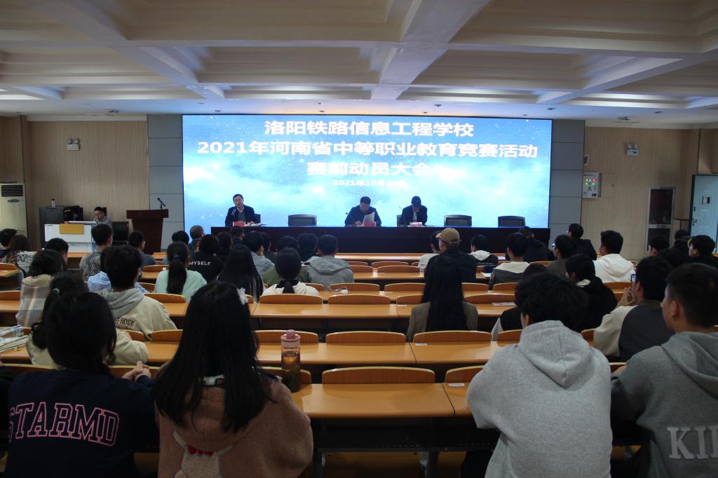 10月14日下午,我校在一号实训楼二楼思政大讲堂举行2021年度省中等职业教育竞赛活动赛前动员大会。校领导李林榕、王怀钦,校属有关部门负责同志,全体参赛选手和辅导教师参加会议。本次会议由教务科科长李力厚主持。