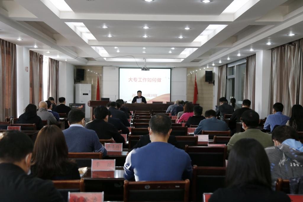 为进一步加强大专生管理,全面提升大专生管理质量和育人效果。11月18日下午,我校在图书信息楼三楼会议室召开“大专工作如何做”专题研讨会。校领导李林榕、王怀钦、杨建光、郭青、于庆斌、李文光、史亚非,校属各部门负责同志、大专班班主任和教师代表参加会议。
