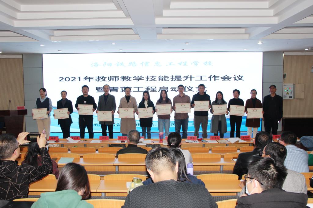 11月25日下午,我校在思政大讲堂举行2021年度教师教学技能提升工作会议暨“青蓝工程”启动仪式。校领导王怀钦,校属有关部门负责同志,“青蓝工程”指导教师和青年教师参加会议。