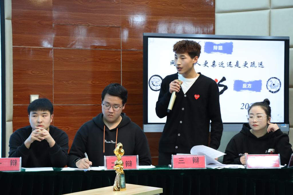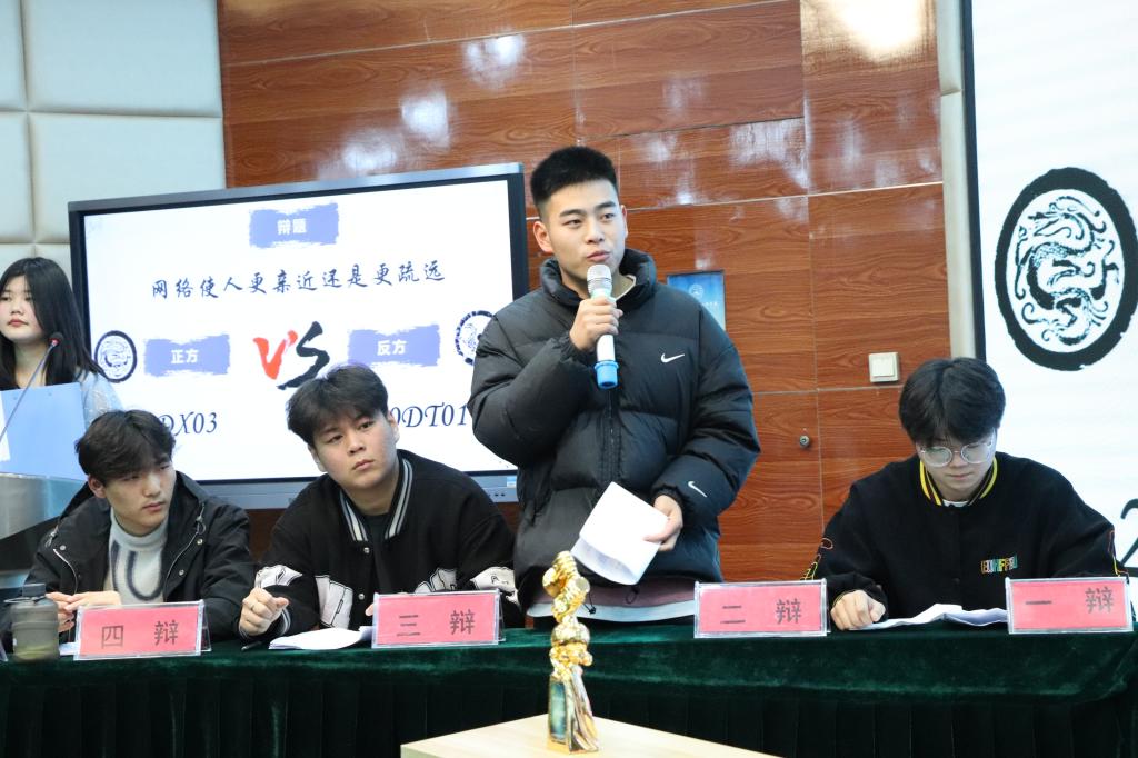 参赛双方围绕“网络使人更亲近还是更疏远”展开辩论。赛场氛围紧张热烈,双方辩手唇枪舌战,引经据典,贏得了在座观众的阵阵掌声。最终2020级铁道通信与信息化技术1班获得冠军,2020级铁道通信与信息化技术1班的姜云龙同学及21级铁道信号自动控制专业3班王星棋同学荣获最佳辩手称号。