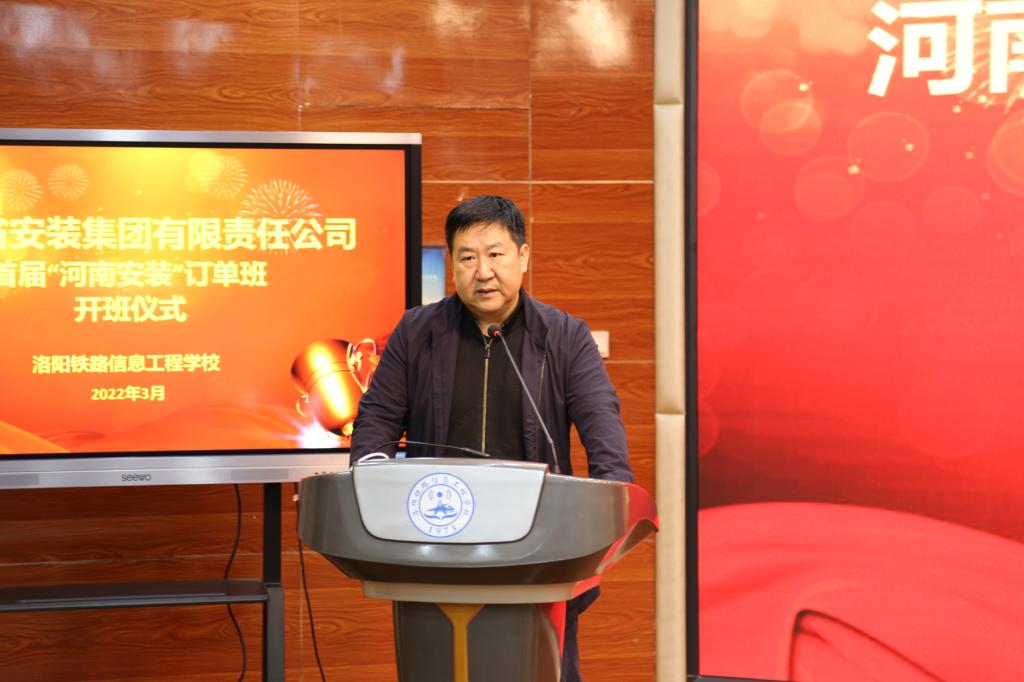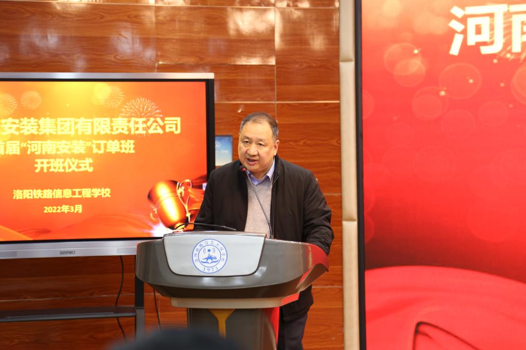 开班仪式上,校企双方领导分别作了讲话,李林榕书记指出河南省安装集团有限责任公司是一家集投资,建设,制造,运营,服务为一体的综合性,多元化,国际化的现代企业,集团技术力量雄厚,专业工种配套机械装备精良,学校与省安装集团的合作是建立在诚实守信、互惠互利的基础上,双方会同心协力,精诚合作,最终实现校企合作共赢的目标。李书记对订单班的学生提出了几点要求和希望,并嘱咐学生要抓住机遇,在企业充分发扬洛铁学子吃苦耐劳、勤学肯干、艰苦奋斗的精神,掌握过硬的本领,为今后服务企业、服务社会打下良好的基础。