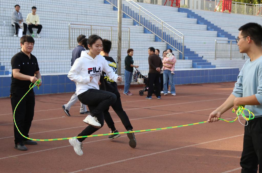 比赛由校工会主办,设单人跳绳和集体跳长绳两个项目,来自8个分工会的140余名教工参加了比赛。