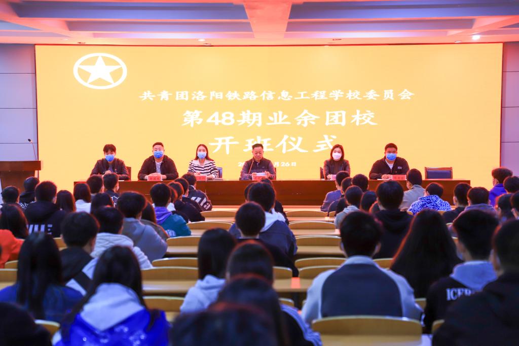 10月26日下午,我校在思政大讲堂举行第48期业余团校开班仪式。副校长史亚非,团委书记朱亚利,电信工程系团总支书记杨帆、信息工程系团总支书记陈英堃、电气工程系团总支书记靳国文以及全体学员参加开班仪式,仪式由团委干事叶俊酉主持。