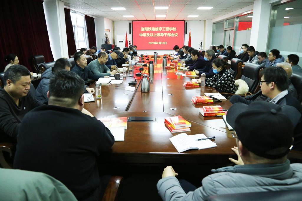 2月15日下午,我校在图书信息楼四楼会议室召开中层及以上领导干部会议。校领导李林榕、王怀钦、郭青、于庆斌、李文光、史亚非出席会议。全校中层及以上干部参加会议。校党委副书记、副校长于庆斌主持会议。