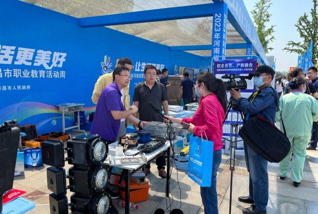 5月14日,2023年河南省暨许昌市职业教育活动周启动仪式在许昌市许都广场举行。今年职业教育活动周的主题是:“技能:让生活更美好”。启动仪式现场,来自全省各地教育局、职业院校、技工学校等54个单位参加职业教育成果展和学生技能展演。