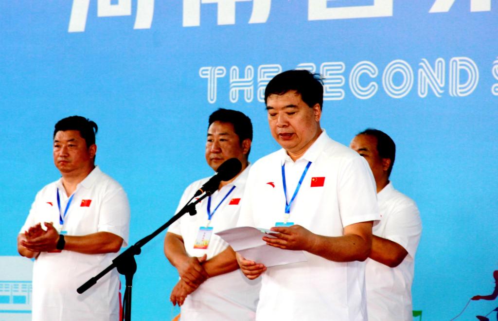 聂世忠在仪式上致辞。他表示,本次比赛是推动体教融合的大课堂,感知青春力量的大聚会,见证新秀辈出的大舞台。多年来,省教育厅坚持把学校体育作为高质量发展的重要内容,精心谋划、狠抓落实,坚持深化体教融合,推进传统体育项目在校园的开展,让学生在运动中享受乐趣、增强体质、健全人格、锤炼意志,不断促进青少年的健康发展。希望全体参赛人员牢记“使命在肩、奋斗有我”的殷切嘱托,大力弘扬中华体育精神和体育道德风尚,为奋力谱写中国式现代化建设的河南篇章贡献青春力量。