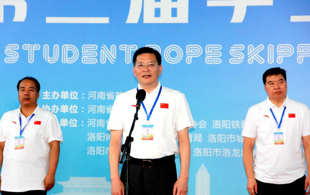 刘林亚宣布河南省第二届学生跳绳比赛开赛。