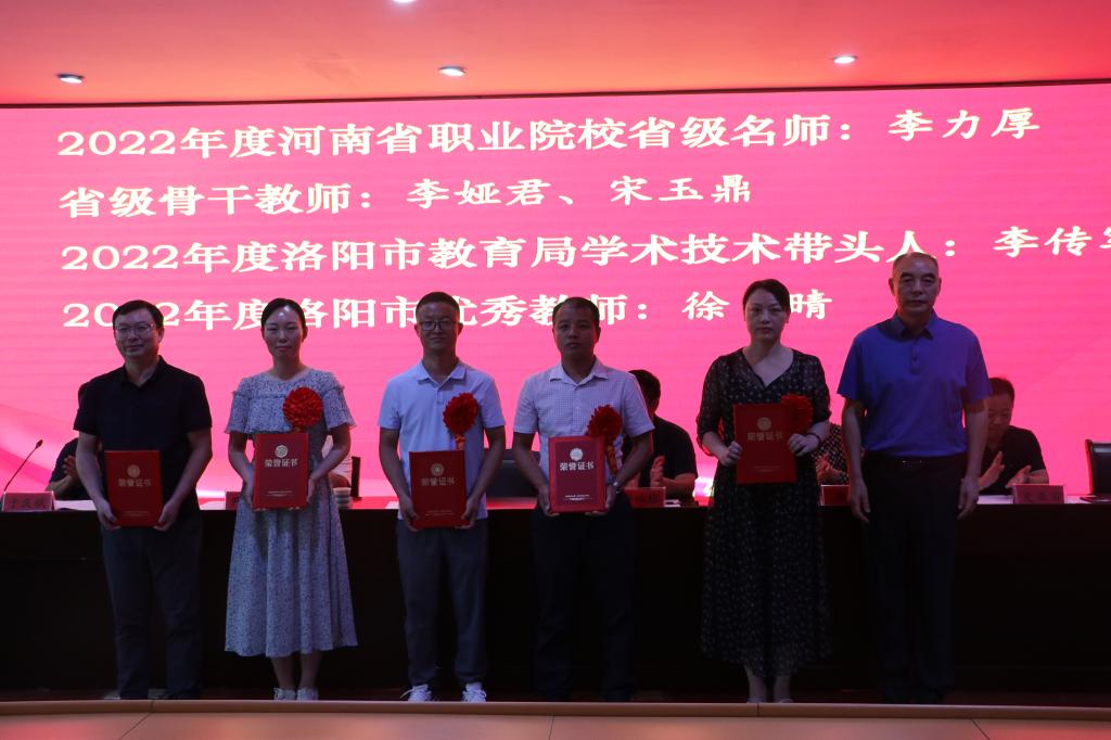 会上宣读了到校工作满30年校龄教职工,2023年度河南省教育厅优秀教育管理人才,2022年度洛阳市教育局学术技术带头人,2023年河南省“奋进新征程,志做大先生”师德主题教育征文,2022年度校级优秀教师、优秀教育工作者等表彰决定,并对获奖教职工进行了表彰。