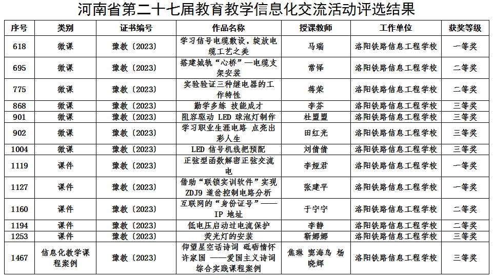 近日,河南省教育厅公布了第二十七届教育教学信息化交流活动评选结果,我校教师喜获佳绩,共有13项作品获奖,其中一等奖3个、二等奖4个、三等奖6个。